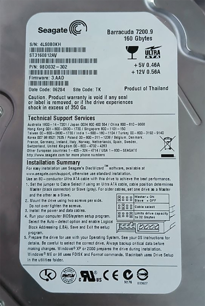 Жесткий диск Seagate ST3160812AV 160Gb 7200 IDE 3.5" HDD