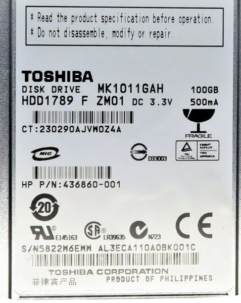 Жесткий диск Toshiba 436860-001 100Gb 4200 IDE 1,8" HDD