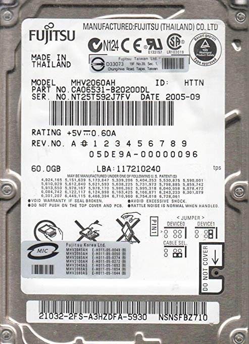 Жесткий диск Fujitsu CA06531-B20200DL 60Gb 5400 IDE 2,5" HDD