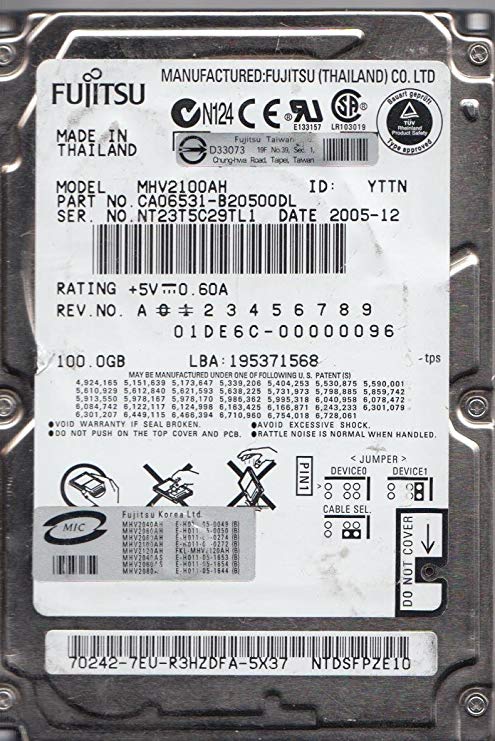 Жесткий диск Fujitsu X8196 100Gb 5400 IDE 2,5" HDD