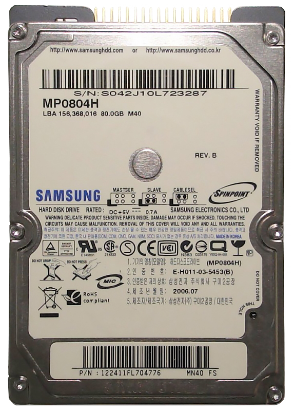 Жесткий диск Samsung MP0804H 80Gb 5400 IDE 2,5" HDD