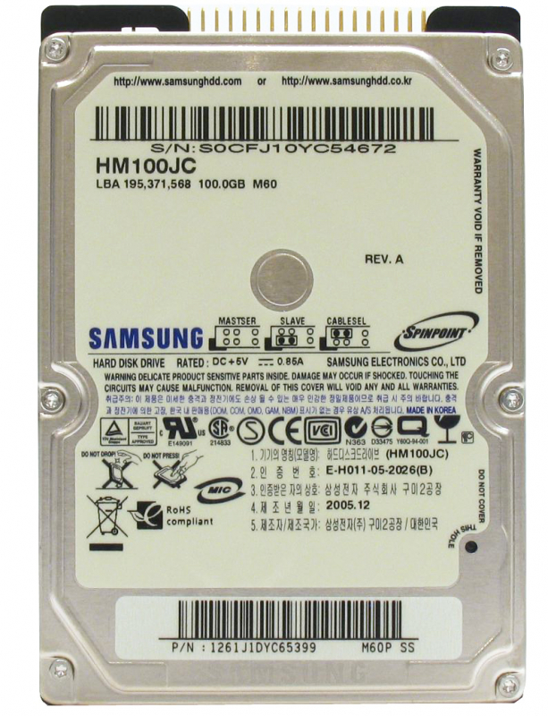 Жесткий диск Samsung HM100JC 100Gb 5400 IDE 2,5" HDD