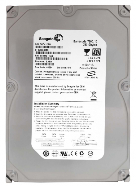 Жесткий диск Seagate ST3750640AS 750Gb SATAII 3,5" HDD