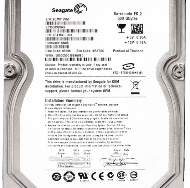 Жесткий диск Seagate 9CA154 500Gb SATAII 3,5" HDD