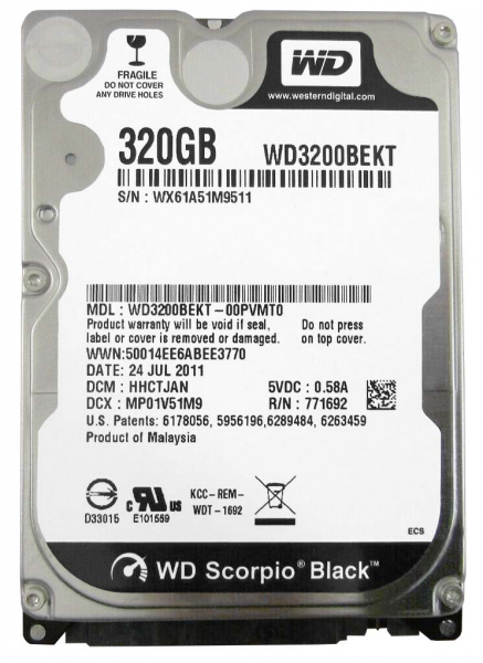 Жесткий диск Western Digital WD3200BEKT 320Gb 7200 SATAII 2,5" HDD