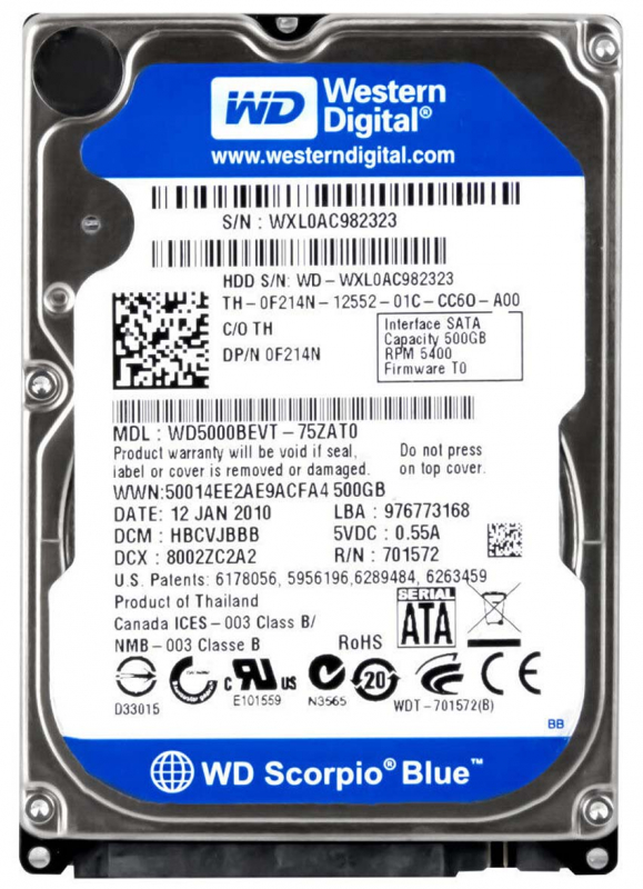 Жесткий диск Western Digital WD5000BEVT 500Gb 5400 SATAII 2,5" HDD