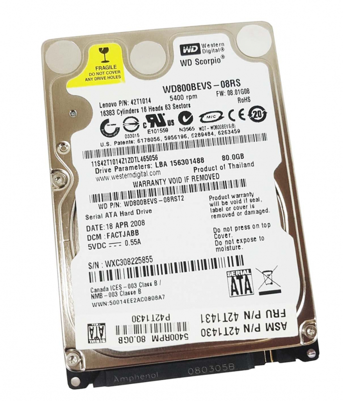 Жесткий диск Western Digital WD800BEVS 80Gb 5400 SATA 2,5" HDD