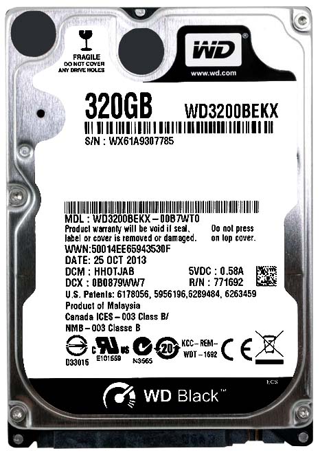 Жесткий диск Western Digital WD3200BEKX 320Gb 7200 SATAIII 2,5" HDD