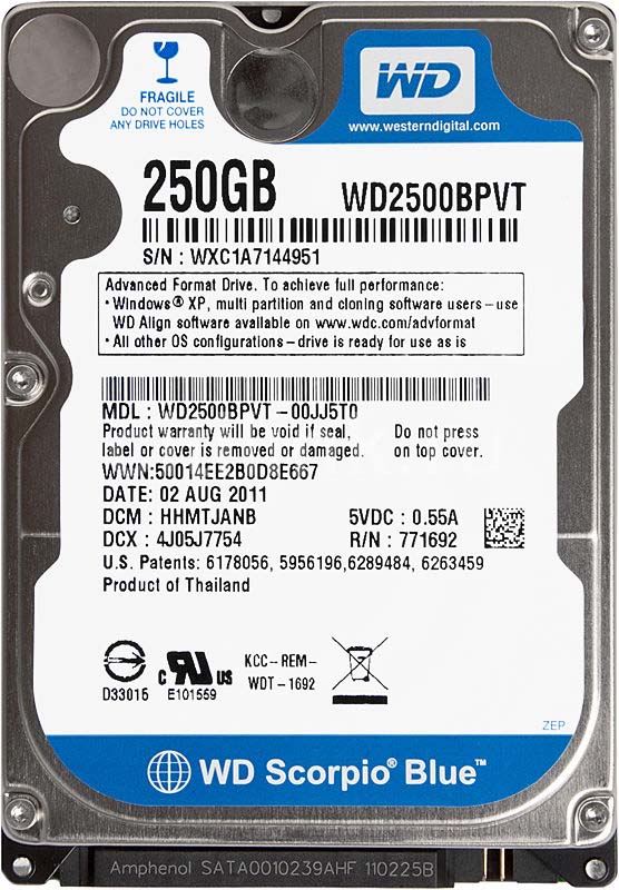 Жесткий диск Western Digital WD2500BPVT 250Gb 5400 SATAII 2,5" HDD