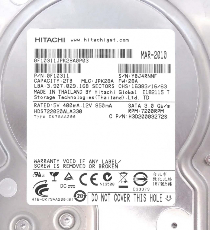 Партномер HDS722020ALA330