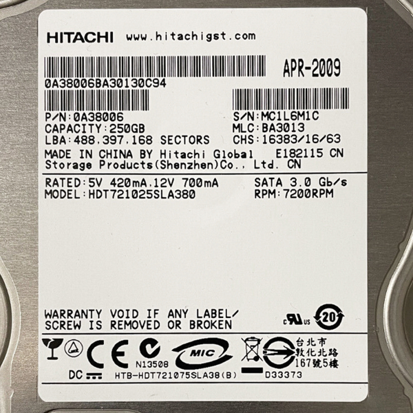 Жесткий диск Hitachi 0A38006 250Gb SATAII 3,5" HDD