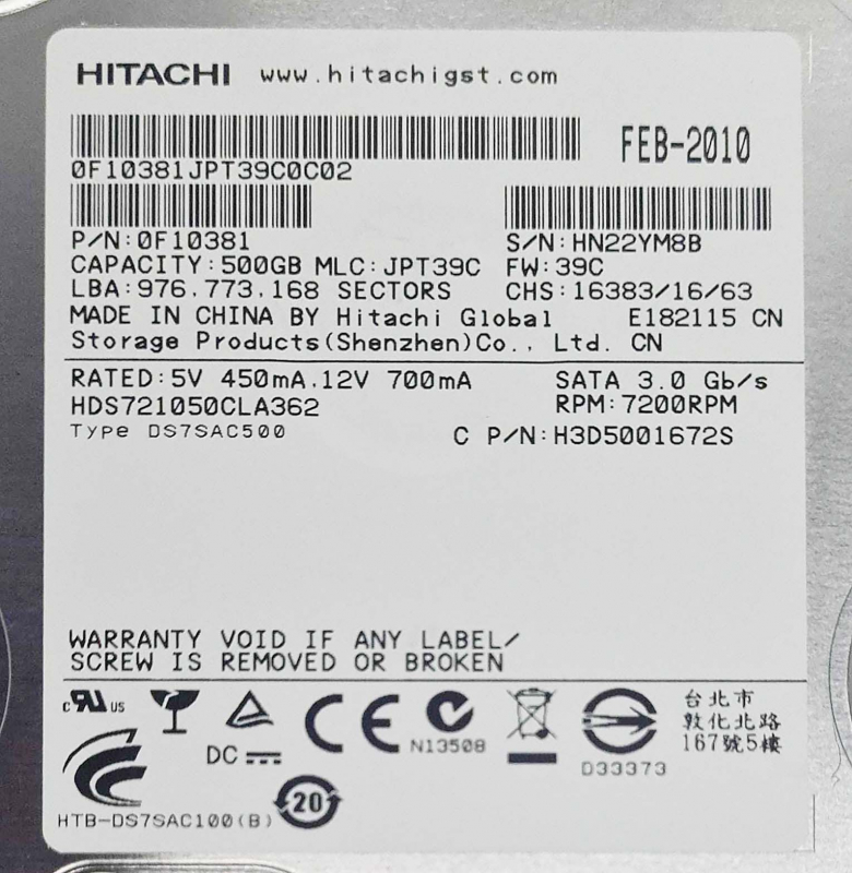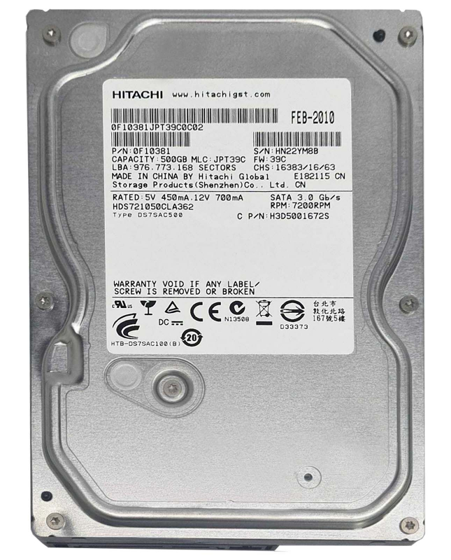 Жесткий диск Hitachi 0F10381 500Gb SATAII 3,5" HDD