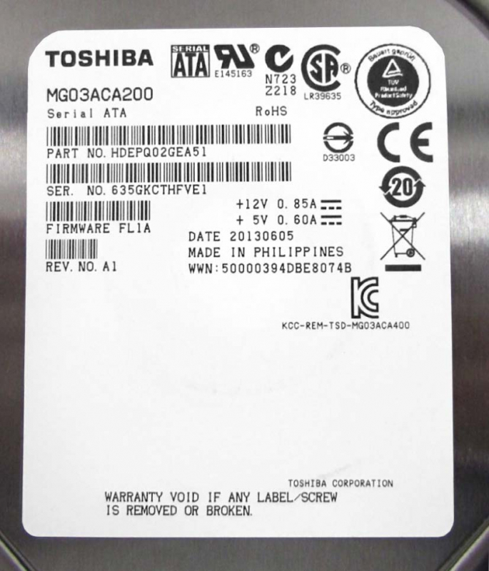 Жесткий диск Toshiba MG03ACA200 2Tb 7200 SATAIII 3,5" HDD