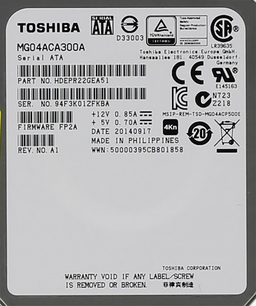 Жесткий диск Toshiba MG04ACA300A 3Tb 7200 SATAIII 3,5" HDD