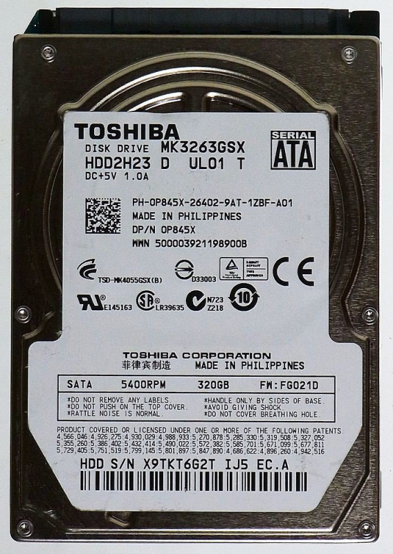 Жесткий диск Toshiba MK3263GSX 320Gb 5400 SATAII 2,5" HDD