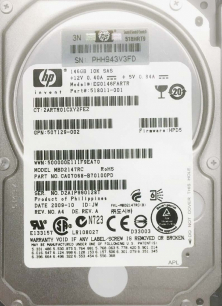 Жесткий диск HP 507129-002 146Gb 10000 SAS 2,5" HDD