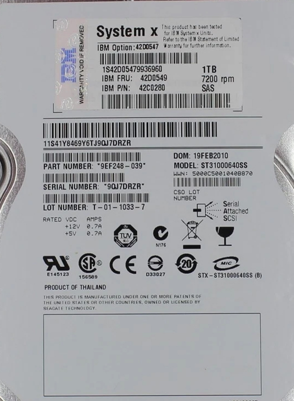 Жесткий диск IBM 42C0280 1Tb 7200 SAS 3,5" HDD