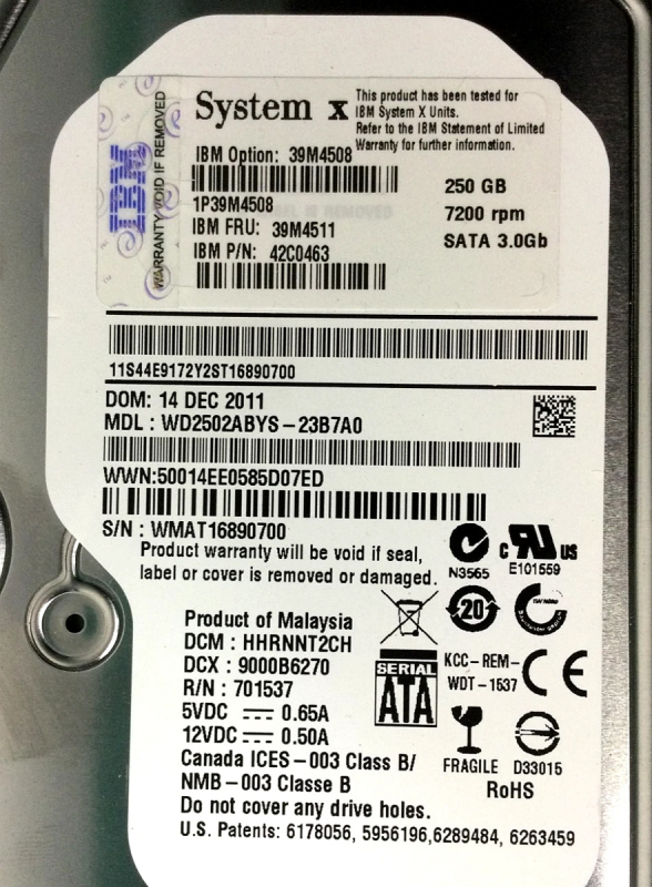 Жесткий диск IBM 39M4511 250Gb 7200 SATAII 3.5" HDD