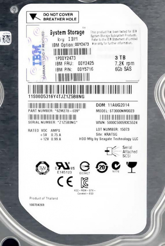 Жесткий диск IBM 00Y2425 3Tb 7200 SAS 3,5" HDD