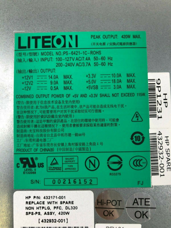 Блок Питания HP 432932-001 420W