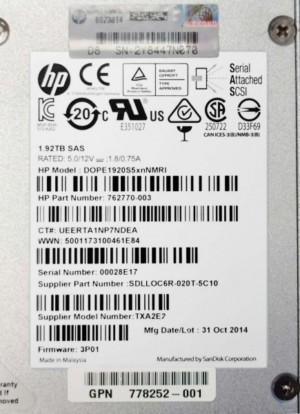 Жесткий диск HP 778180-001 1,92Tb SAS 2,5" SSD