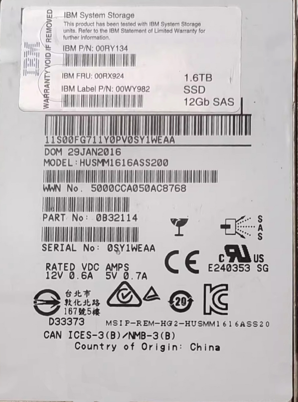 Жесткий диск IBM 00RX924 1,6Tb SAS 2,5" SSD