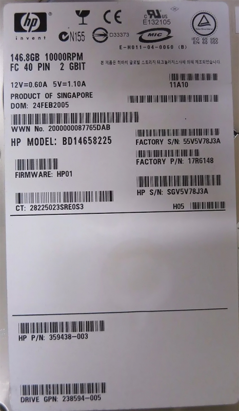 Жесткий диск HP 17R6148 146,8Gb Fibre Channel 3,5" HDD