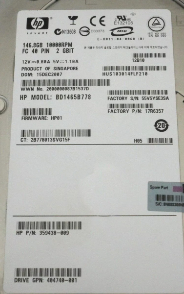 Жесткий диск HP 17R6357 146,8Gb Fibre Channel 3,5" HDD