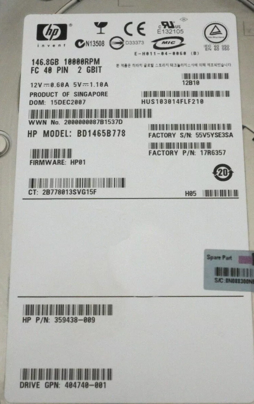 Жесткий диск HP 404740-001 146,8Gb Fibre Channel 3,5" HDD