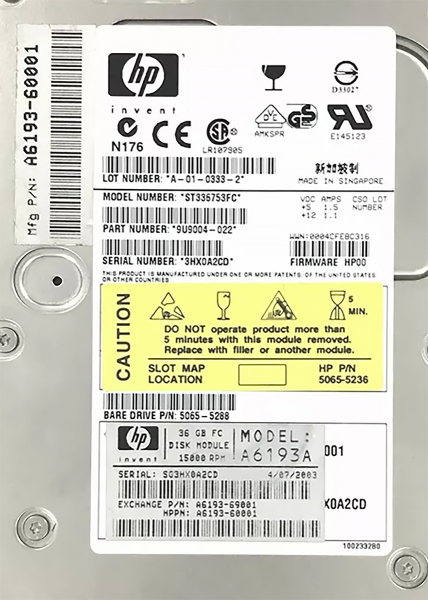 Жесткий диск HP A6193A 36Gb Fibre Channel 3,5" HDD