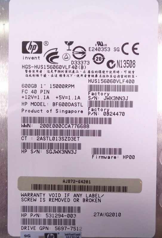 Жесткий диск HP 0B24470 600Gb Fibre Channel 3,5" HDD