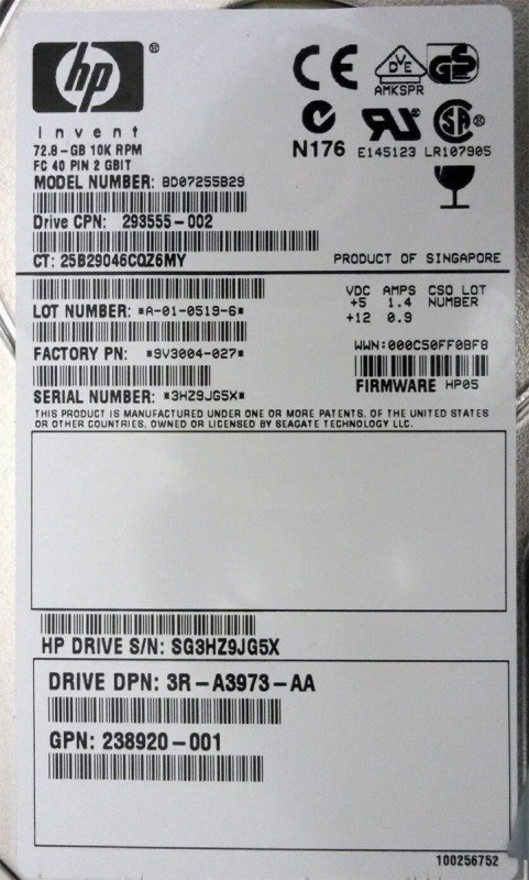 Жесткий диск HP 293555-002 72,8Gb Fibre Channel 3,5" HDD