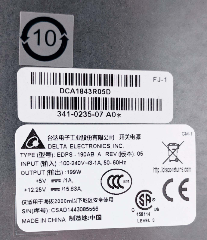 Резервный Блок Питания Cisco 341-0235-07 199W