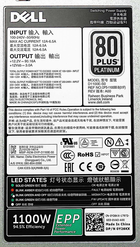 Резервный Блок Питания Dell TFR9V 1100W