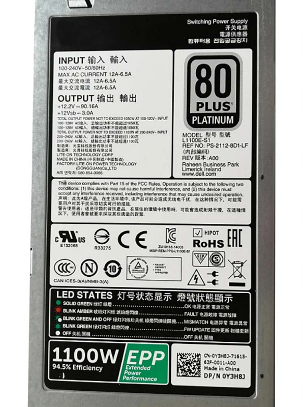 Резервный Блок Питания Dell Y3H8J 1100W