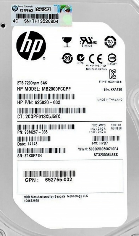 Жесткий диск HP 9SM267-035 2Tb SAS 3,5" HDD