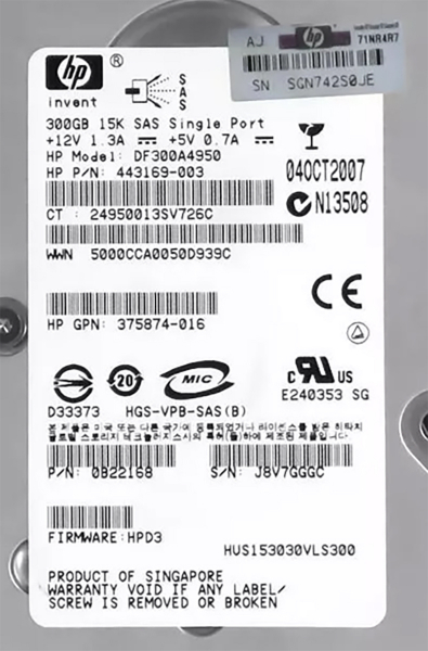 Жесткий диск HP DF300A4950 300Gb SAS 3,5" HDD