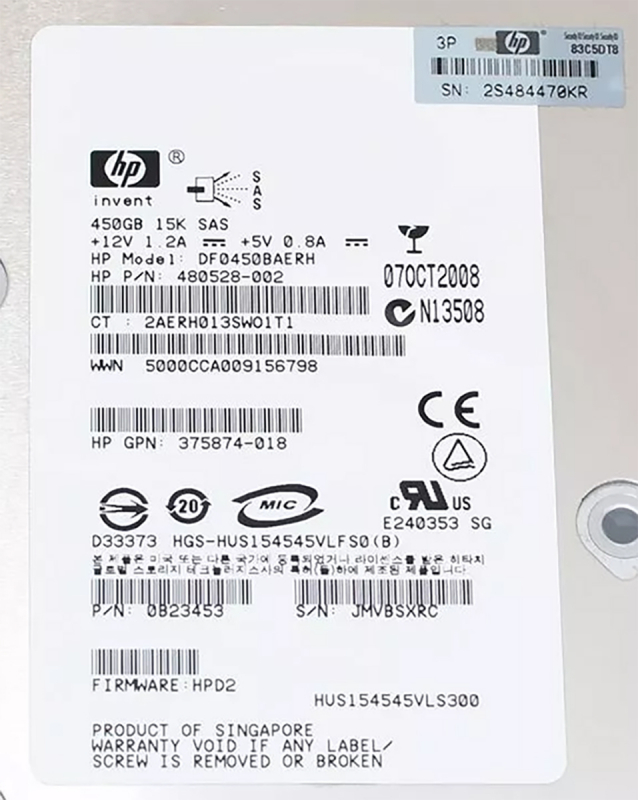 Жесткий диск HP DF0450BAERH 450Gb SAS 3,5" HDD