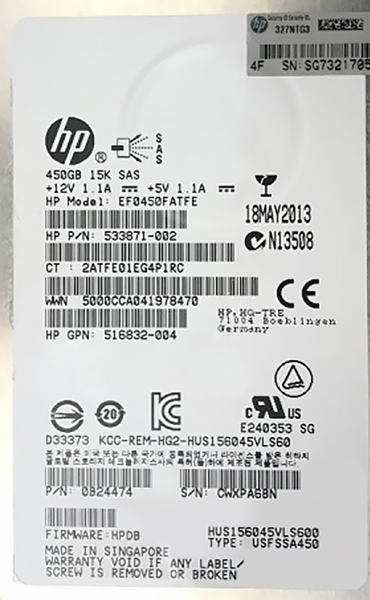 Жесткий диск HP EF0450FATFE 450Gb SAS 3,5" HDD