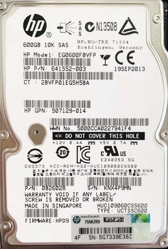 Жесткий диск HP EG0600FBVFP 600Gb SAS 2,5" HDD