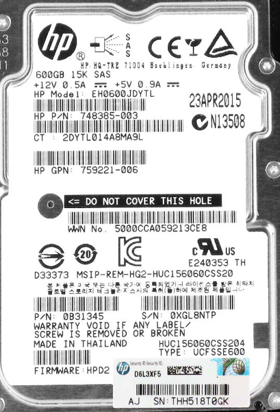 Жесткий диск HP 748385-003 600Gb 15000 SAS 2,5" HDD