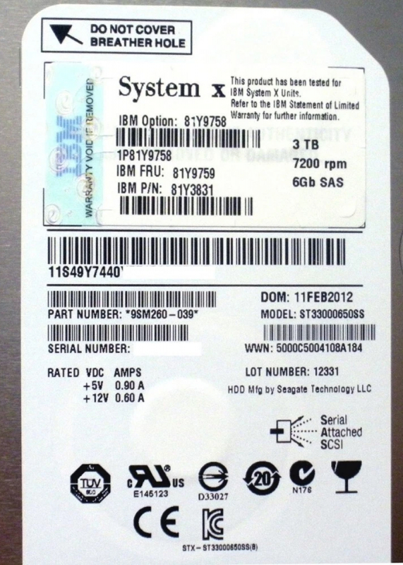 Жесткий диск IBM 81Y3831 3Tb SAS 3,5" HDD