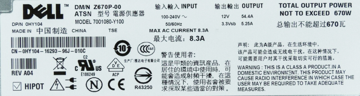 Резервный Блок Питания Dell Z670P-00 670W