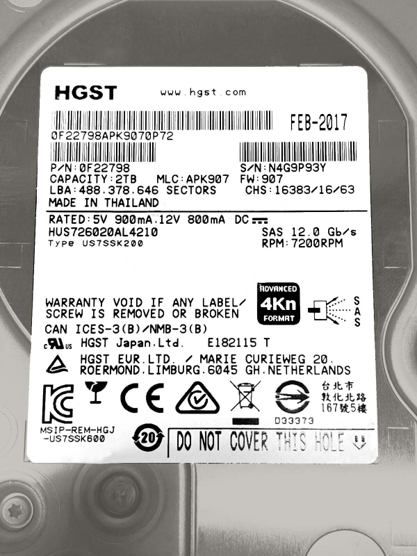Жесткий диск HGST 0F22798 2Tb 7200 SAS 3,5" HDD