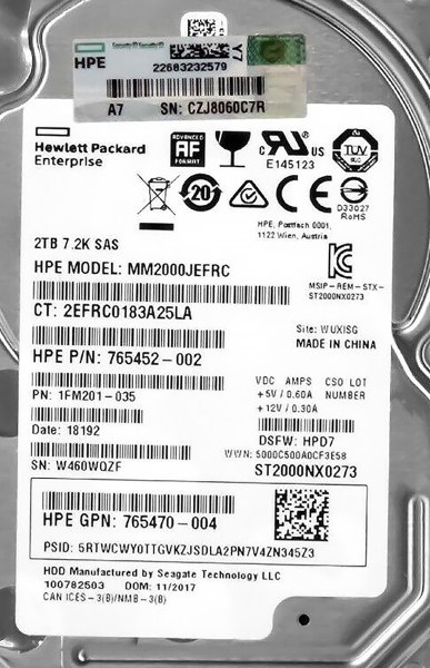 Жесткий диск HP 765452-002 2Tb 7200 SAS 2,5" HDD