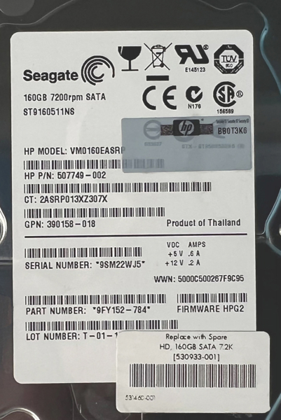 Жесткий диск HP 530891-B21 160Gb 7200 SATAII 2,5" HDD