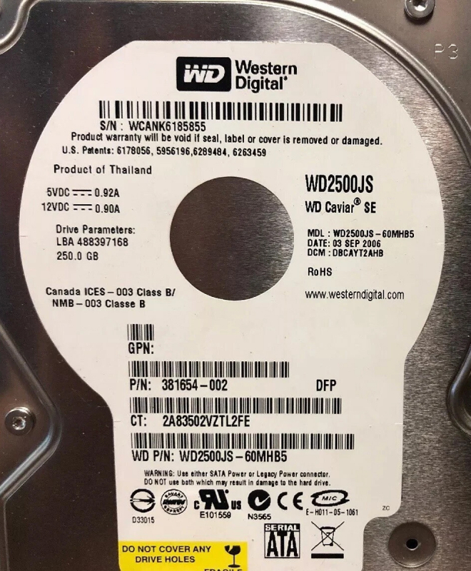Жесткий диск HP 381654-002 250Gb SATAII 3,5" HDD