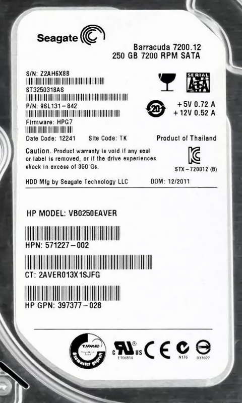 Жесткий диск HP 571227-002 250Gb SATAII 3,5" HDD