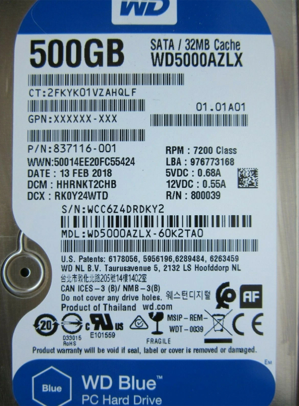 Жесткий диск HP 837116-001 500Gb SATAIII 3,5" HDD