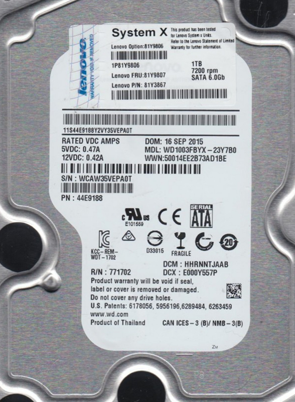 Жесткий диск IBM 81Y9806 1Tb SATAIII 3,5" HDD
